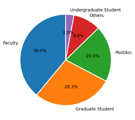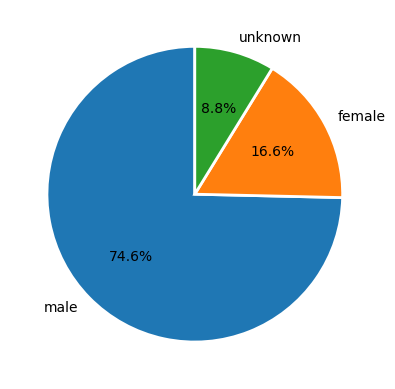 Gender association was estimated by the first names with genderize.io, providing a binary probability that each name is male or female. In case genderize.io provided an association probability below 68%, or the name was not existing in the data base, we flagged the association as unknown.
